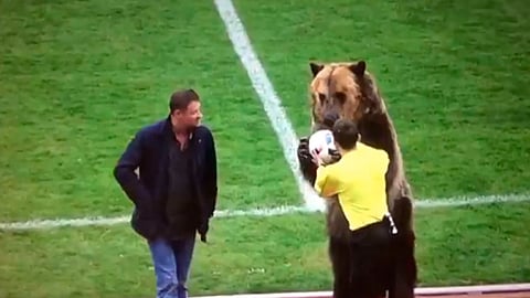 Sorprendidos es como quedaron los fanáticos que se encontraban presentes en un partido de la tercera división de Rusia luego que ingresara un oso al campo, el entrenador del úrsidos lo dirigió frente al público para que este diera con sus propias patas el balón.