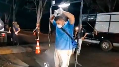 "Todos los compañeros que vayan entrando a la ciudad deben de pasar por este filtro y después subirse a su vehículo", dice en el video el edil.
