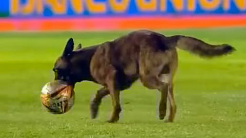 El video rápidamente se hizo viral en las redes sociales debido a la inocencia del canino que se robó el show por querer jugar como los profesionales dentro de la cancha, sin que ningún jugador pudiera detenerlo.