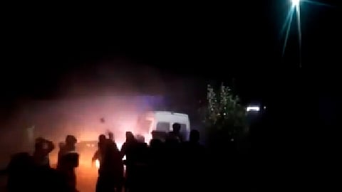 Luego de varios minutos de caos, dos hombres son detenidos por los vecinos, quienes los lincharon con piedras y palos antes de prenderles fuego, al igual que a los vehículos en los que pretendían huir.