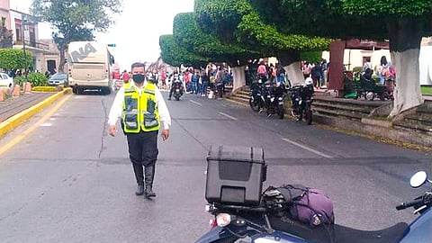 Elementos de la Dirección de Tránsito y Movilidad efectúan cortes a la circulación en las avenidas Francisco I. Madero y Acueducto, toda vez que en dicho sitio se encuentra un grupo de personas que llevan a cabo una manifestación.