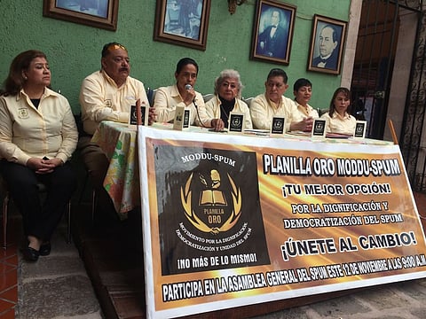 En la conferencia de prensa que brindaron este domingo, en un café situado en el Centro Histórico de la ciudad, integrantes de la Planilla Oro -a través de Lelia Próspero Maldonado, Rafaela Cerna Piñón y Guillermo Ramón Campillo García- plantearon que durante la campaña percibieron trabas en la logística de sus eventos, hubo supuesta injerencia del Comité Ejecutivo General en turno; señalaron también que se intentó vandalizar su propaganda electoral y, a diferencia de las otras tres planillas (Roja, Magenta y Azul), no recibieron apoyo de ninguna organización