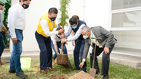 Morelia, Michoacán (MiMorelia.com).- La memoria histórica del Nuevo Hospital General "Doctor Miguel Silva" se vuelve a enriquecer con la plantación de dos árboles que realizó el gobernador Silvano Aureoles, en memoria de quienes perdieron la vida por Covid-19.