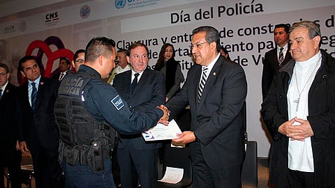 Durante el evento, celebrado en Casa de Gobierno, y encabezado por el gobernador del estado, Silvano Aureoles Conejo, el pasado viernes, estuvieron presentes autoridades de la ONU, estatales y federales, además de los policías condecorados, ante quienes el diputado afirmó que "se ha trabajado de manera continua para capacitar y dotar de las mejores herramientas a los policías, hombres y mujeres, que día tras día arriesgan su vida en favor de los ciudadanos para garantizar la convivencia pacífica, la seguridad y el respeto a las leyes".