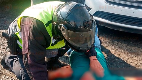 Morelia, Michoacán (MiMorelia.com).- El oficial de Policía de Tránsito y Movilidad Estatal, Ricardo Vargas, se convirtió en héroe al brindar auxilio y salvar la vida de un hombre de la tercera edad que fue atropellado por un taxi que se dio a la fuga.