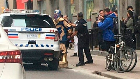 Canadá (MiMorelia.com/Redacción).- El titán más poderoso del universo, Thanos, por fin fue detenido, pero no fueron los Avengers, fue la Policía de Toronto la que le puso un alto al genocida loco.