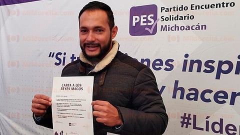 Morelia, Michoacán (MiMorelia.com).- "Ya no soy un niño, pero tengo alma de niño", justificó el dirigente del Partido Encuentro Solidario (PES), Eder López, al darle lectura a su carta para los Reyes Magos.