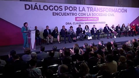Durante un evento llamado "Diálogos por la Transformación Encuentros con la Sociedad Civil", realizado en el Museo Interactivo de Economía (MIDE), la precandidata presidencial de la coalición "Sigamos Haciendo Historia", explicó que este equipo coordinará los foros donde se recopilaran las propuestas para construir su plan de gobierno.