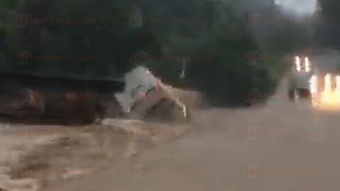 Aquila, Michoacán (MiMorelia.com).- Un camión de pasajeros de la línea Purhépechas fue arrastrado por la corriente que se generó a consecuencia de una intensa lluvia en la población de Maquili, perteneciente a este municipio, justo en la carretera que va hacia Coahuayana. El vehículo terminó volcado, pero afortunadamente no hubo víctimas que lamentar, según trascendió en la labor periodística.