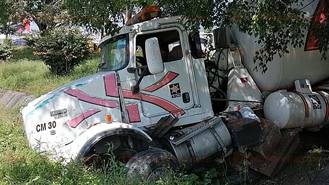 También arribaron unos paramédicos locales, quienes revisaron la salud del paciente y éste no requirió traslado hospitalario. Se apreció que la unidad siniestrada es de la marca Kenworth, color blanco, perteneciente a la empresa "abcd concreto hidráulico", con número económico CM30 y placa GR09112, la cual derribó un poste del alumbrado público y dañó un árbol.