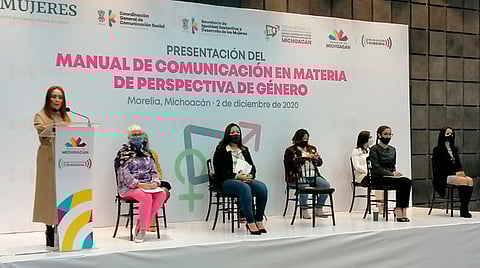 Morelia, Michoacán (MiMorelia.com).- Basado en seis ejes rectores para equilibrar contenidos y manejo de lenguaje sin violentar los derechos de las mujeres, la Coordinación de Comunicación Social del estado presentó esta mañana el manual de comunicación en materia de perspectiva de género.
