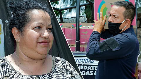 "Ahorita en esta pandemia esto es muy buen apoyo, ya que mi esposo no tiene trabajo, él es músico y se quedó sin empleo", dijo Bertha Alicia al recibir su paquete alimentario en la puerta de su casa.