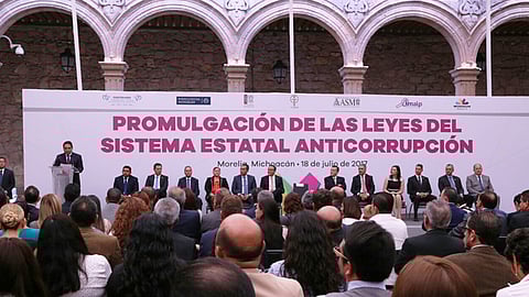Morelia, Michoacán (MiMorelia.com).- Este martes por la tarde se firmó el decreto de promulgación de los siete ordenamientos legales que forman parte del Sistema Estatal Anticorrupción, que operará a partir de enero del próximo año.