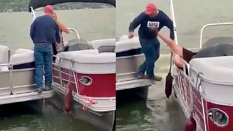 Debido a esto, el hombre terminó en el agua y la lancha de la mujer salió disparada, angustiando a los espectadores.