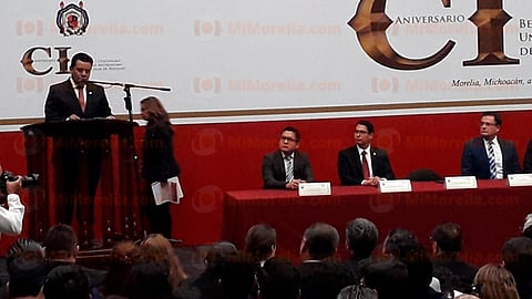 Al fungir como orador oficial en el acto conmemorativo del CI Aniversario de la Universidad Michoacana de San Nicolás de Hidalgo (UMSNH) realizado en el Colegio de San Nicolás dijo "que la transformación se de a partir de las construcción de la igualdad, de las mismas reglas, de las mismas condiciones y presupuestos para todas las universidades del país"