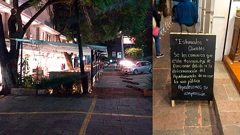 Alrededor de 20 comercios lucen ya sin las sillas y mesas y sin la techumbre que cubría a estos; además fueron colocados letreros como explicación a los clientes que deseaban usar el lugar comúnmente conocido.