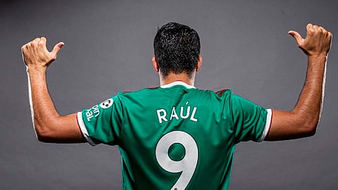 Raúl Jiménez juega como delantero y porta la playera número 9 del equipo.