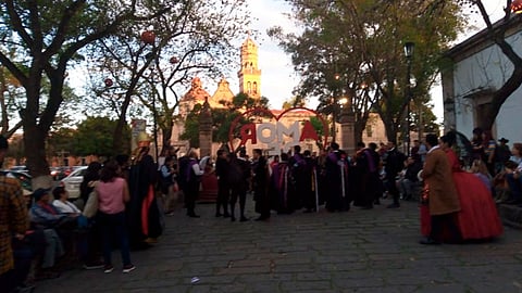 Morelia, Michoacán (MiMorelia.com).- En la entrada de la Calzada Fray Antonio de San Miguel, justo frente al Santuario de Guadalupe, "La tuna del Distrito Universitario de Michoacán", iniciaron una callejoneada con la presencia de morelianos y visitantes.