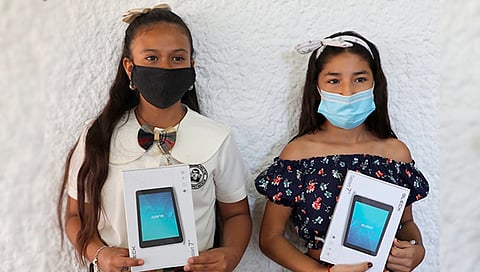 "Hoy con la aportación que ustedes nos hacen como empresa socialmente responsable, tenemos la fortuna de entregar a nuestros estudiantes un aparato electrónico que les permitirá continuar con su educación a distancia y así alcanzar sus sueños de convertirse en profesionistas, y de esta forma evitar la deserción".