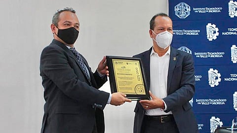 Morelia, Michoacán (MiMorelia.com).- A nombre del Gobierno de Michoacán, Rubén Medina Niño titular de la Secretaría de Desarrollo Rural y Agroalimentario (Sedrua), hizo entrega de un reconocimiento al Instituto Tecnológico del Valle de Morelia (ITVM), por sus 45 años de servicio, transcurso en el cual han logrado egresar 20 mil profesionistas que atienden al campo para fortalecerlo y hacerlo producir más.
