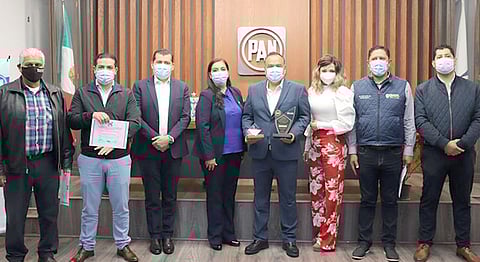 Morelia, Michoacán (MiMorelia.com).- Por su contribución para mejorar la calidad de vida de sus municipios, por innovar pese a las condiciones económicas y por el cuidado de la salud ante la pandemia por el Covid-19, alcaldesas y alcaldes panistas de Ecuandureo, La Piedad, Quiroga y Charo, recibieron la presea "Manuel Torres Serranía".