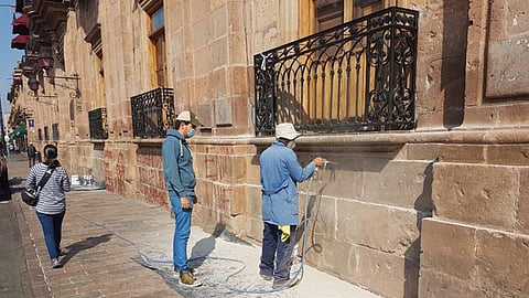 Morelia, Michoacán (MiMorelia.com/Redacción).- Alrededor de 115 mil de pesos costará retirar las pintas de os edificios del Centro Histórico de Morelia, realizadas durante el pasado fin de semana, por parte de normalistas, informó el el titular de la Gerencia de Patrimonio Cultural de Morelia, Gaspar Hernández Razo.