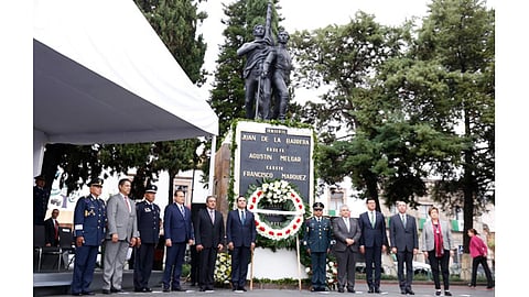 El mandatario estatal Silvano Aureoles, acompañado de autoridades de los tres Poderes del Estado, depositaron una ofrenda floral y rindieron guardia de honor al monumento en el que se encuentran inscritos los nombres de los protagonistas de la Gesta Heroica en el Castillo de Chapultepec.