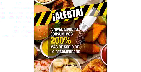 Ciudad de México (MiMorelia.com).- Actualmente, en el mundo, consumimos un 200% más de sodio de lo recomendado y, a ese ritmo, no se alcanzará el objetivo de la Organización Mundial de la Salud (OMS) de reducir la ingesta de sodio en un 30% para 2025, pues se calcula un consumo promedio, a nivel global, de 10.8 gramos de sal al día.