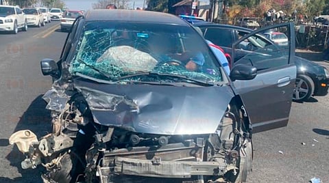 Se apreció que entre las unidades involucradas está una camioneta color rojo, propiedad de la empresa "Ferregarcia" y número económico 07. El otro automotor es compacto y de color gris acero, el cual quedó destrozado de la parte delantera.