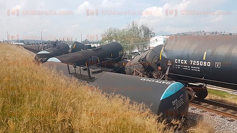 Morelia, Michoacán (MiMorelia.com/RED 113).- Unos contenedores que eran remolcados por el tren se descarrilaron cuando circulaban en la zona de Ciudad industrial. Los citados vagones de carga son utilizados para el transporte de combustóleo, afortunadamente estaban vacíos, comentaron contactos de rescate, los cuales agregaron que hubo tres empleados levemente heridos.