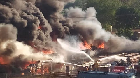 Elementos de bomberos de la Administración Portuaria Internacional de Lázaro Cárdenas (Apilac) y de otras corporaciones acudieron al lugar para tratar de controlar el fuego.