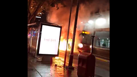 Vía Twitter, el usuario @oscarin1198 subió el video en el que se observa la unidad envuelta en llamas, mientas los usuarios salen rápidamente de la estación.