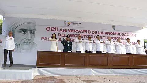 En la plaza principal de Apatzingán y acompañado de las autoridades de los tres órdenes de gobierno, el mandatario estatal escuchó el mensaje emitido por la oradora oficial, la diputada local Adriana Hernández, quien señaló que la Constitución de Apatzingán es vigente en tanto documento libertario para la nación y las personas que la conforman, pero también porque llama a hacer del respeto a la ley una norma de convivencia civilizadora.