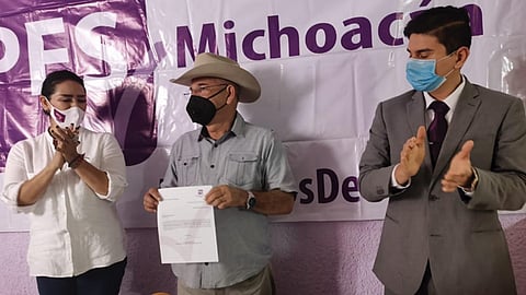 En el evento de entrega se le otorgó la constancia en la cual Mora Chávez cumplió con los términos y los tiempos que establece la convocatoria para el registro del proceso interno del PES.