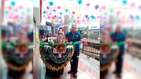 Morelia, Michoacán (MiMorelia.com/Redacción).- Mes con mes el señor Ruperto Zárate, empleado de limpieza en un conocido centro comercial de esta capital, adorna su carrito de basura de acuerdo a la celebración que esté próxima.