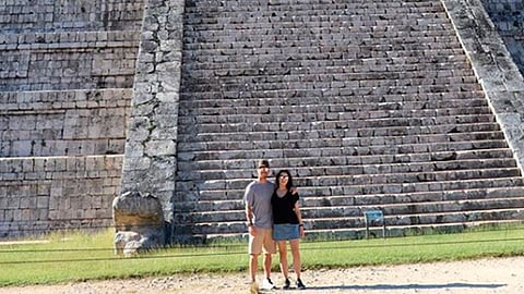 Sergio Ramos luce fascinado con la arquitectura maya de una de las Maravillas del Mundo, mismo que Ramos comentó en su foto como "¡Impresionante! ¡Ya nos queda otra menos por conocer!".