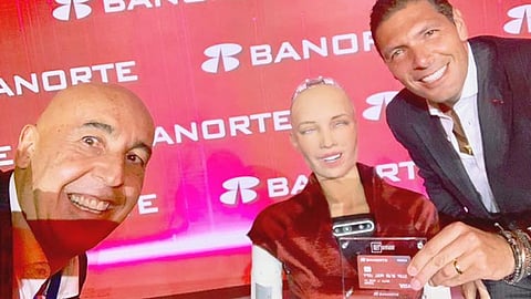 "En Banorte estamos muy orgullosos de convertirnos en el primer banco de México en dar una tarjeta de crédito a Sophia the Robot, la primera robot humanoide de la historia", escribió el Hank González.
