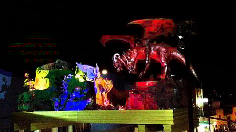 La tradicional alegoría representa la lucha de la Virgen con el Dragón, plasmada en el Génesis, y que se monta en el recinto religioso como parte de los festejos que se realizan del 8 de diciembre al 6 de febrero.