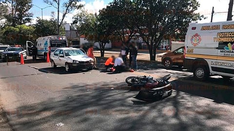 Morelia, Michoacán (MiMorelia.com).- Un motociclista resultó lesionado al ser impactado por un taxi sobre la avenida Madero Poniente, situación que ocurrió la mañana de este viernes en esta capital.