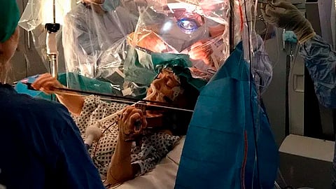 Dagmar Turner de 53 años de edad, es integrante de la orquesta sinfónica de la isla Wight y fue sometida a una operación que se llevó a cabo bajo una técnica que les permitió a los médicos revisar en tiempo real las áreas del cerebro responsables del movimiento.