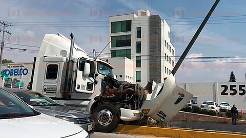 Morelia, Michoacán (MiMorelia.com/Redacción).- La mañana de este miércoles se registró un accidente sobre el libramiento, a la altura de la salida a Quiroga de esta capital michoacana, un tráiler se estampó contra un poste de luz, lo que ocasionó caos vial.
