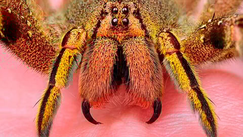 La araña bananera es del tamaño de la palma de una mano, tiene cuatro ojos. pese a que su mordedura es agresiva, no es mortal.