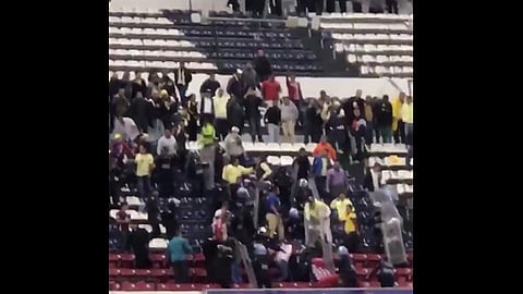 Durante el zafarrancho, los 'seguidores' de ambos equipos usaron todo lo que encontraron para arrojarles a los contrarios, incluso uno de los oficiales fue despojado de su escudo y golpeado con éste.