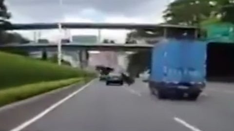 China (MiMorelia.com/ AxlSip).- Un conductor en China circulaba tranquilamente por una carretera cuando inesperadamente es aplastado por otro automóvil.