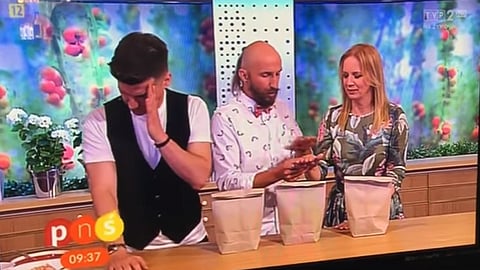 Polonia (Rasainforma.com/Redacción).- Una conductora de televisión polaca se ensartó un clavo tras un fallido "truco de magia". La presentadora oficial tenía que aplastar una bolsa en las cuales se encontraba un clavo en su interior.