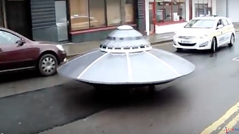 La policía local persiguió la nave hasta descubrir que se trataba de una obra que formaba parte de una exposición de arte en dicha localidad.