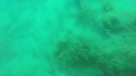 En la grabación se puede escuchar un estruendo y enseguida el agua comienza a enturbiarse por el movimiento de la arena. Los peces se ven desconcertados y nadan mientras la arena se arremolina en el fondo del mar.