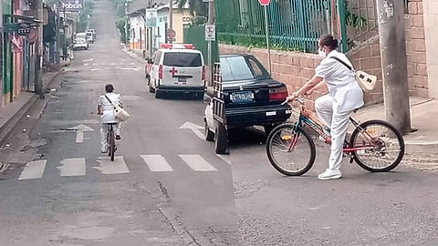 El Salvador (MiMorelia.com).- Una enfermera se viralizó en redes sociales pues sus ganas y necesidad de servir la obligan a trasladarse a su centro de trabajo en bicicleta, hecho que quedó registrado en unas fotografías.